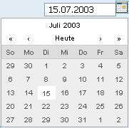 Bei Datumsfeldern können Sie den Text entweder manuell eingeben oder Sie klicken auf das Kalendersymbol, worauf sich ein kleiner Kalender öffnet, aus welchem Sie das Datum mit der Maus auswählen können. Wenn es sich z.B. nur um eine Verschiebung von einem Tag handelt, kann dies auch mit der „Pfeil nach unten“-Taste direkt im Eingabefeld getätigt werden.