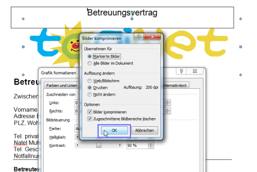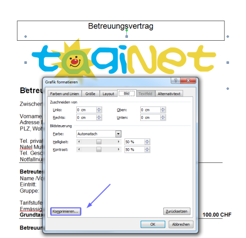 Wenn Sie auf „OK“ klicken, wird die entsprechende Grafik in der RTF-Datei komprimiert bzw. verkleinert. Sie können die Datei nun wie gewohnt speichern und ins tagiNet laden.