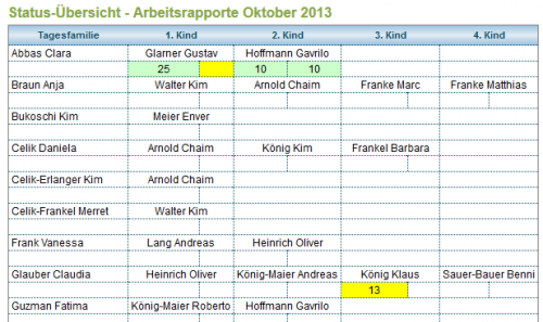 Frau Claudia Glauber hat für das Kind „König Klaus“ einige Vorerfassungen getä-tigt, dass Blatt aber noch nicht definitiv abgegeben. Ansonsten wäre das gelbe Feld grün eingefärbt.